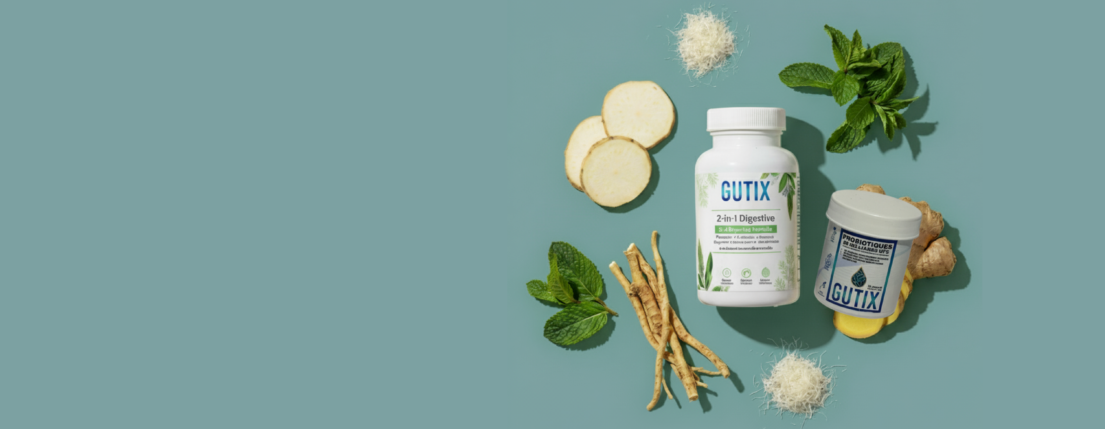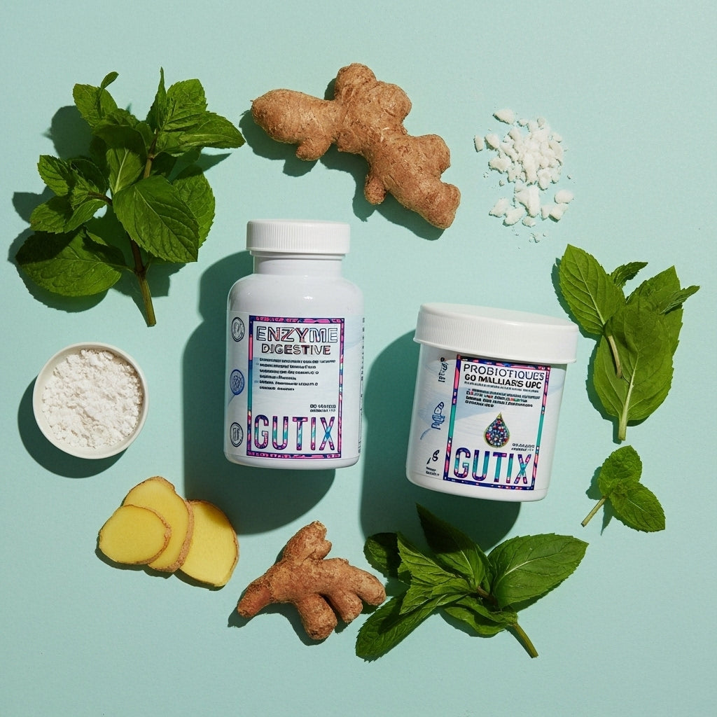 Gutix est un complément alimentaire naturel 2-en-1 composé de probiotiques, prébiotiques et enzymes digestives.